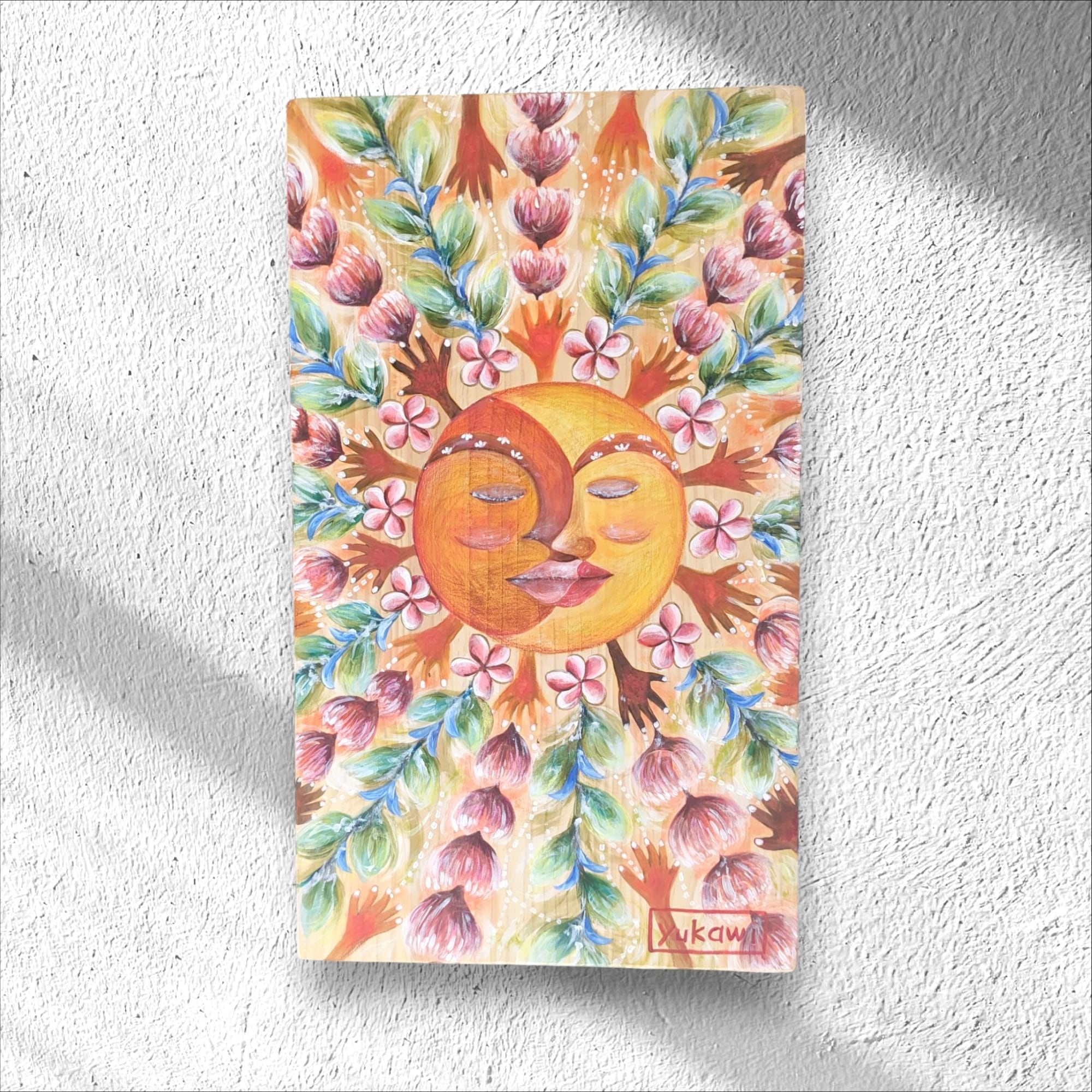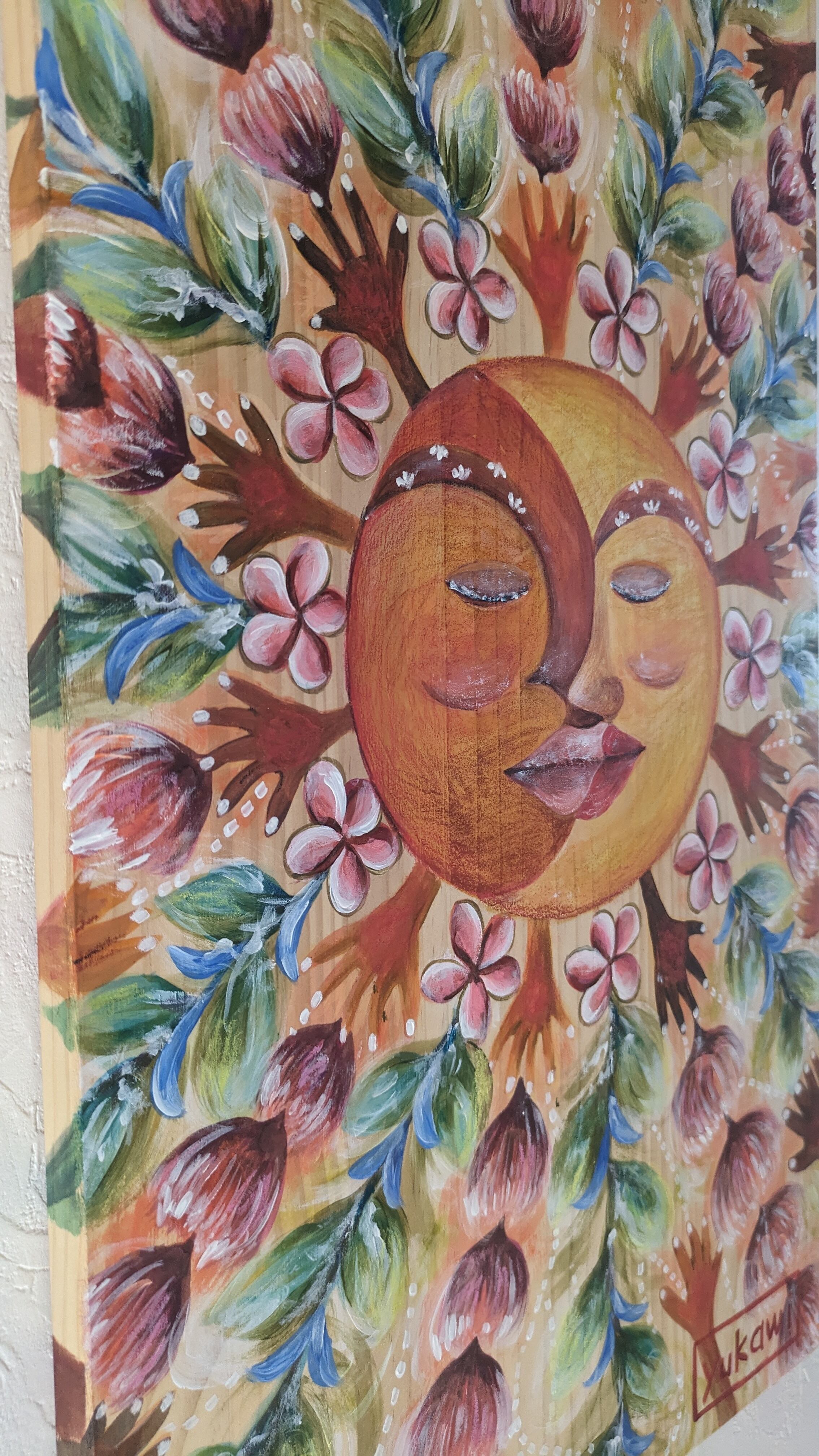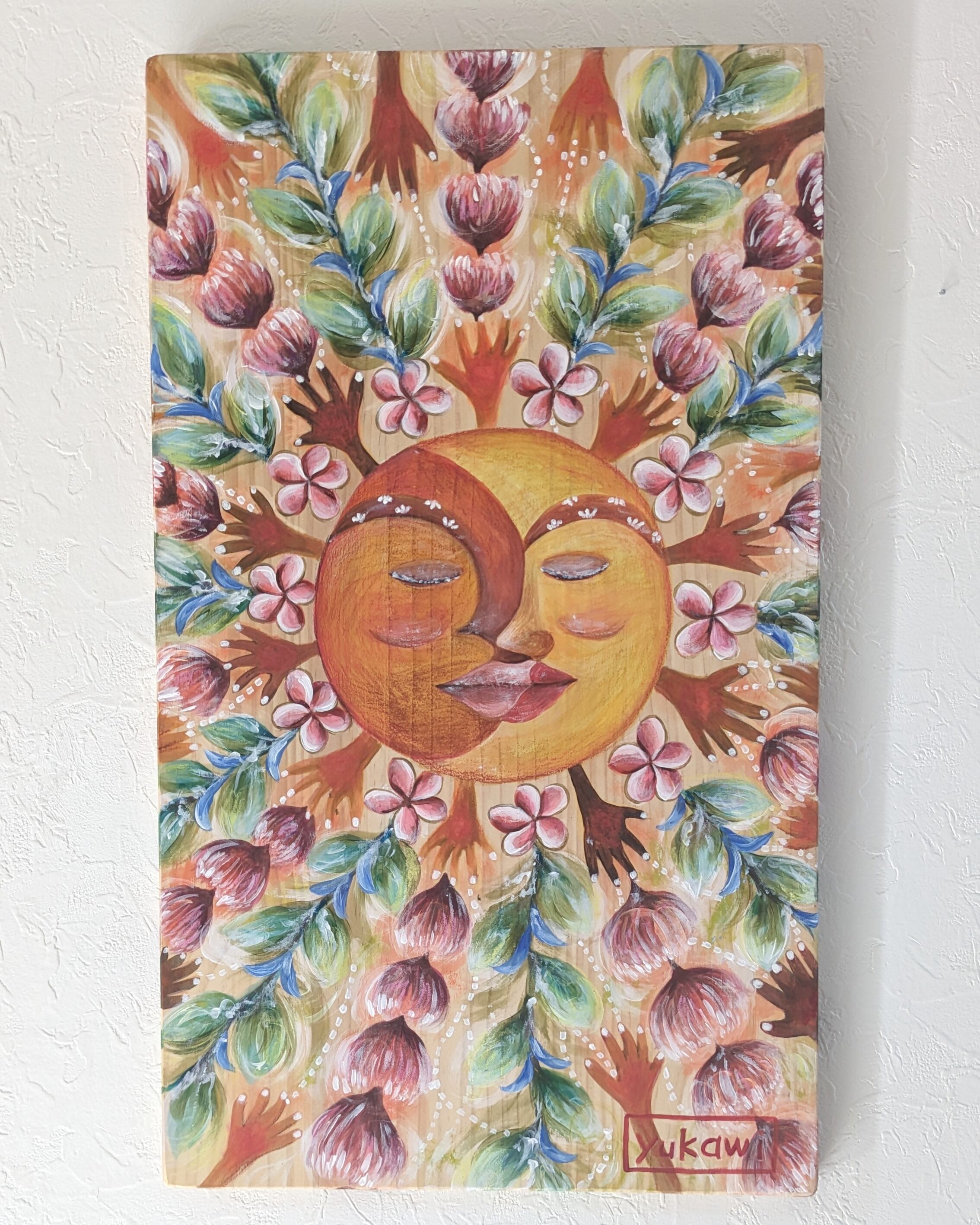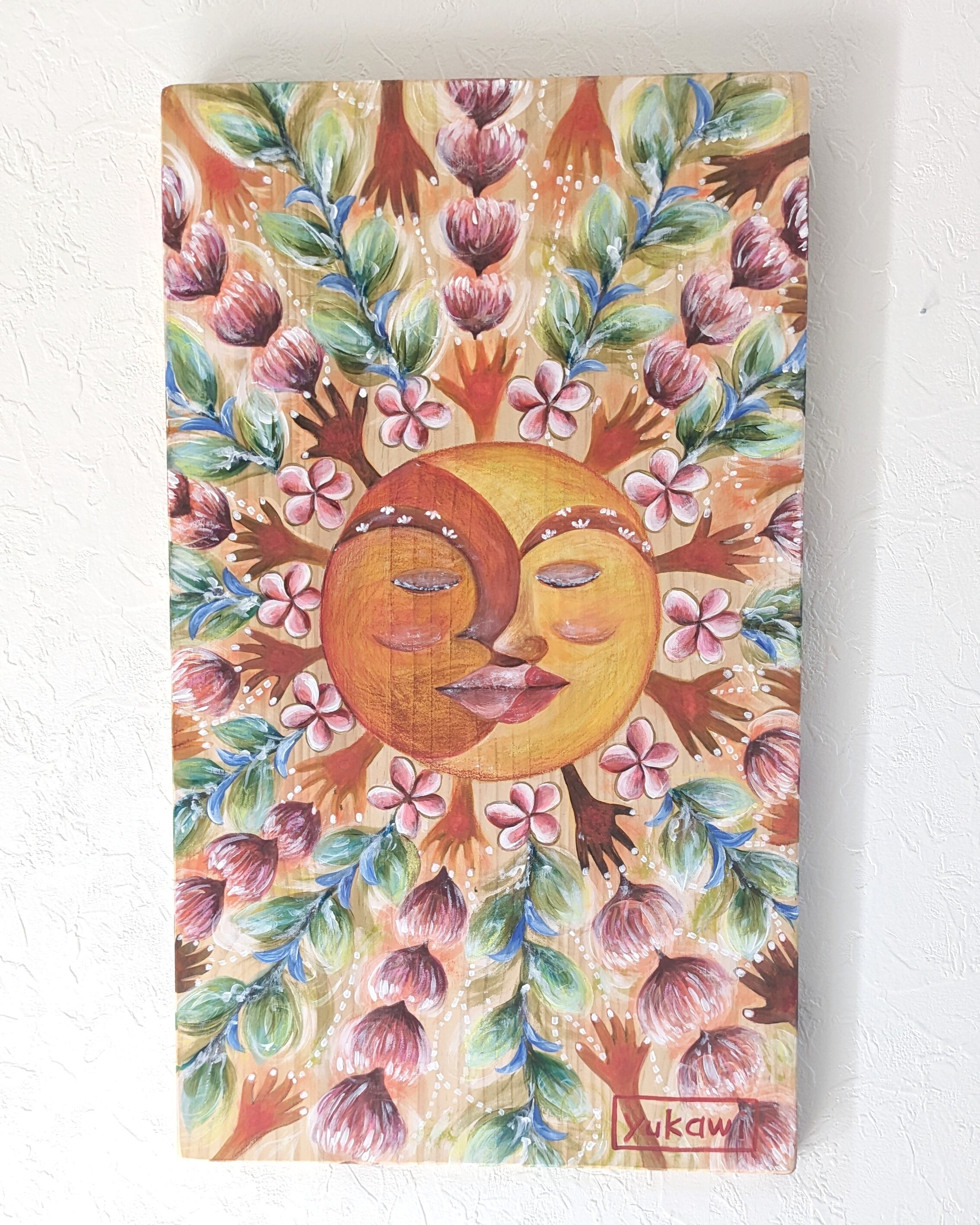 画材は、自然素材の土と顔料や、アクリルやクレヨンなどなど。様々な質感を使用してます。