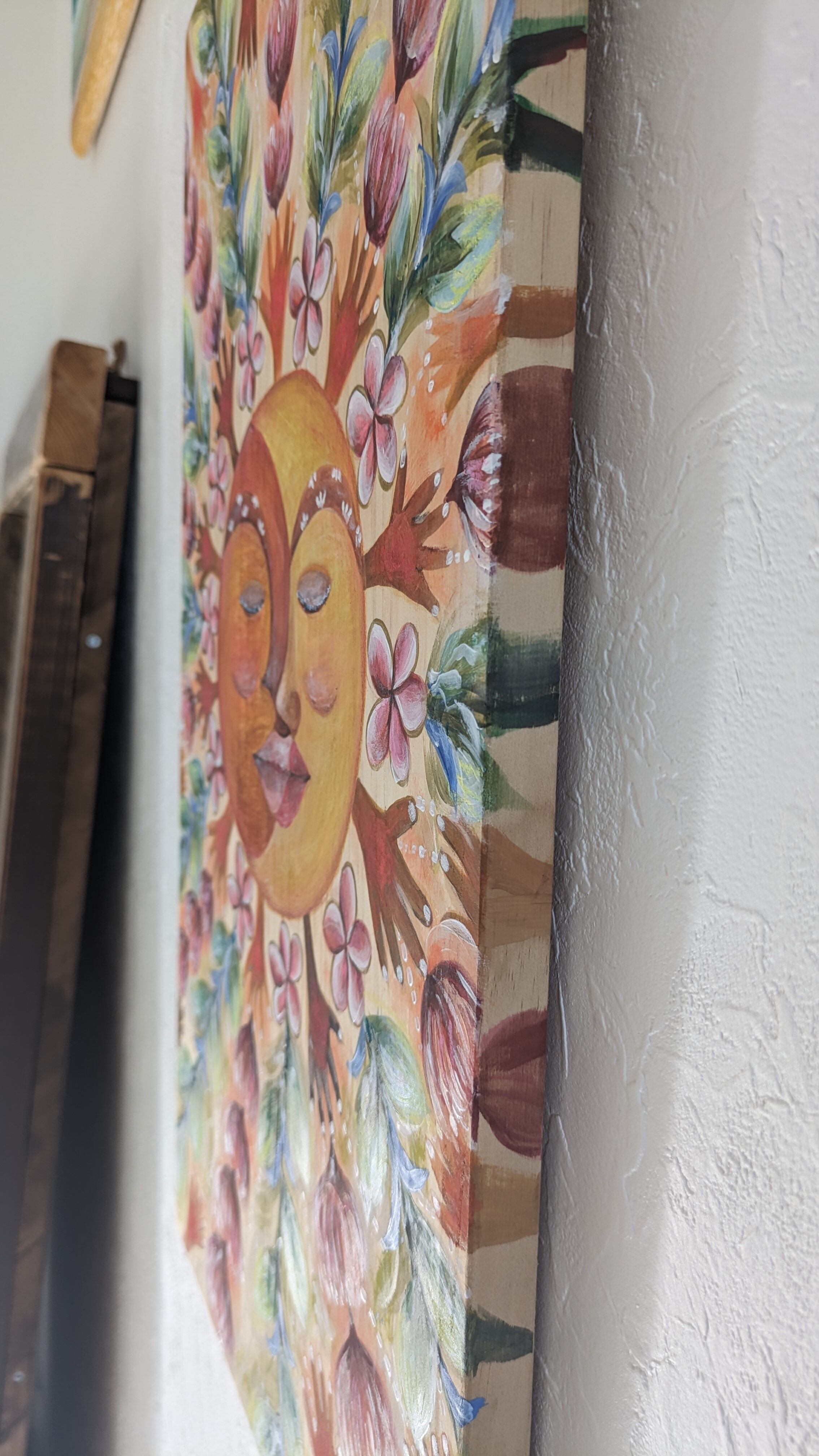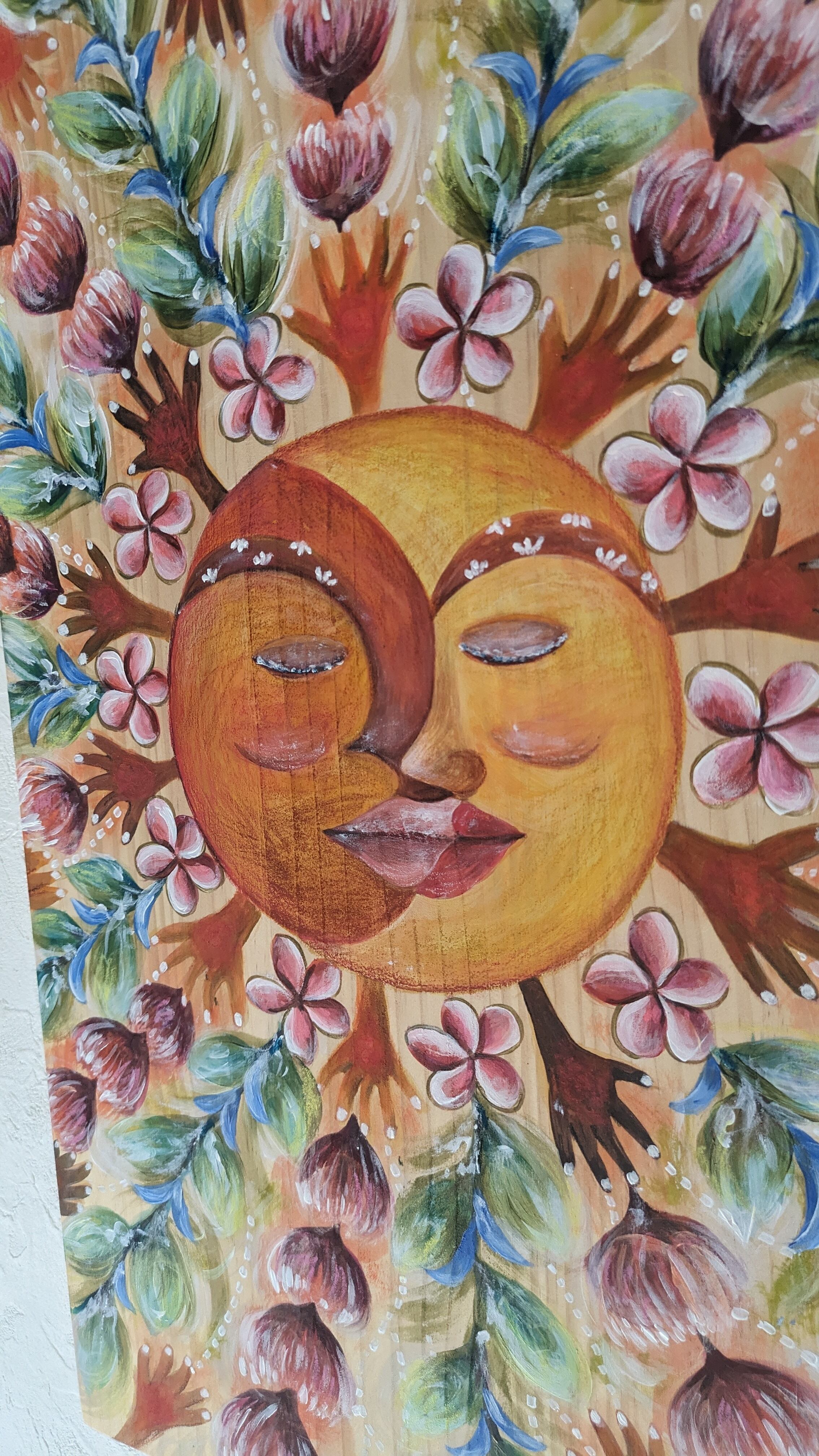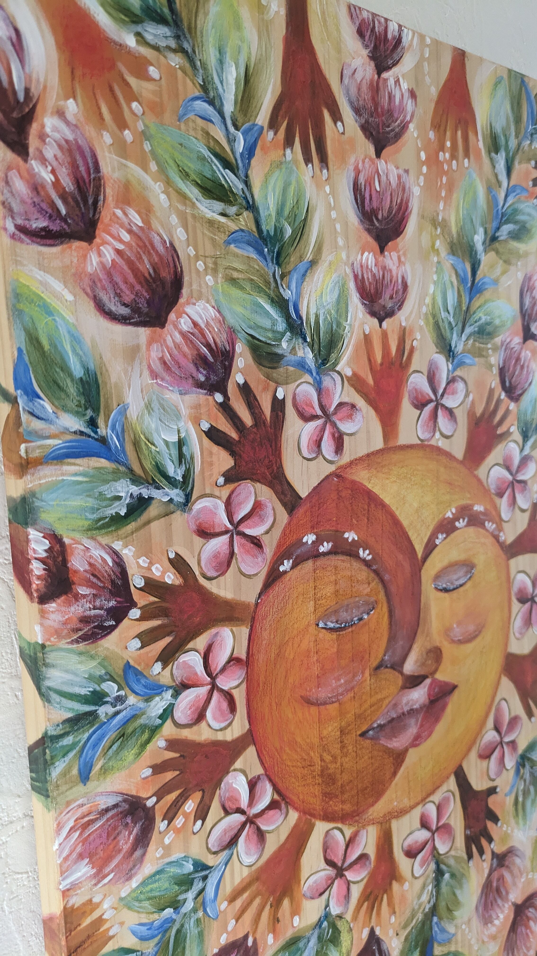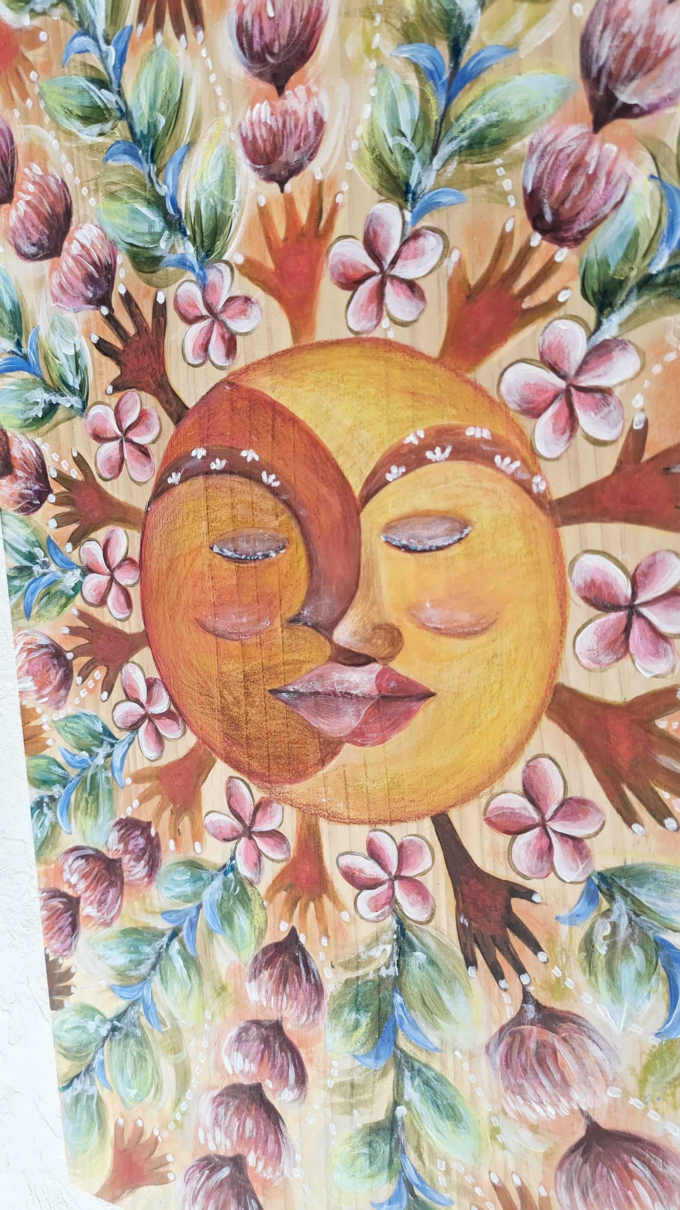 画材は、自然素材の土と顔料や、アクリルやクレヨンなどなど。様々な質感を使用してます。