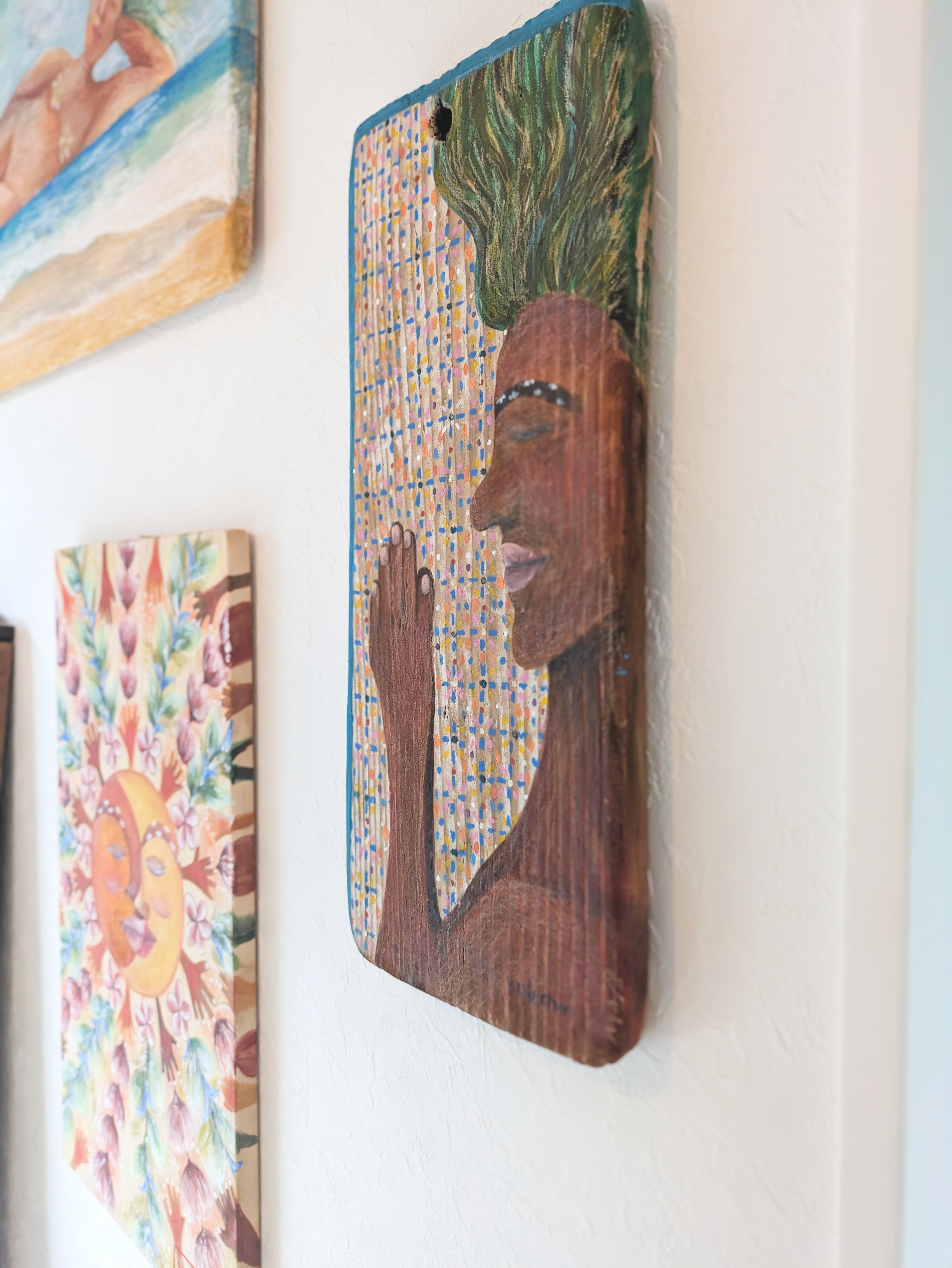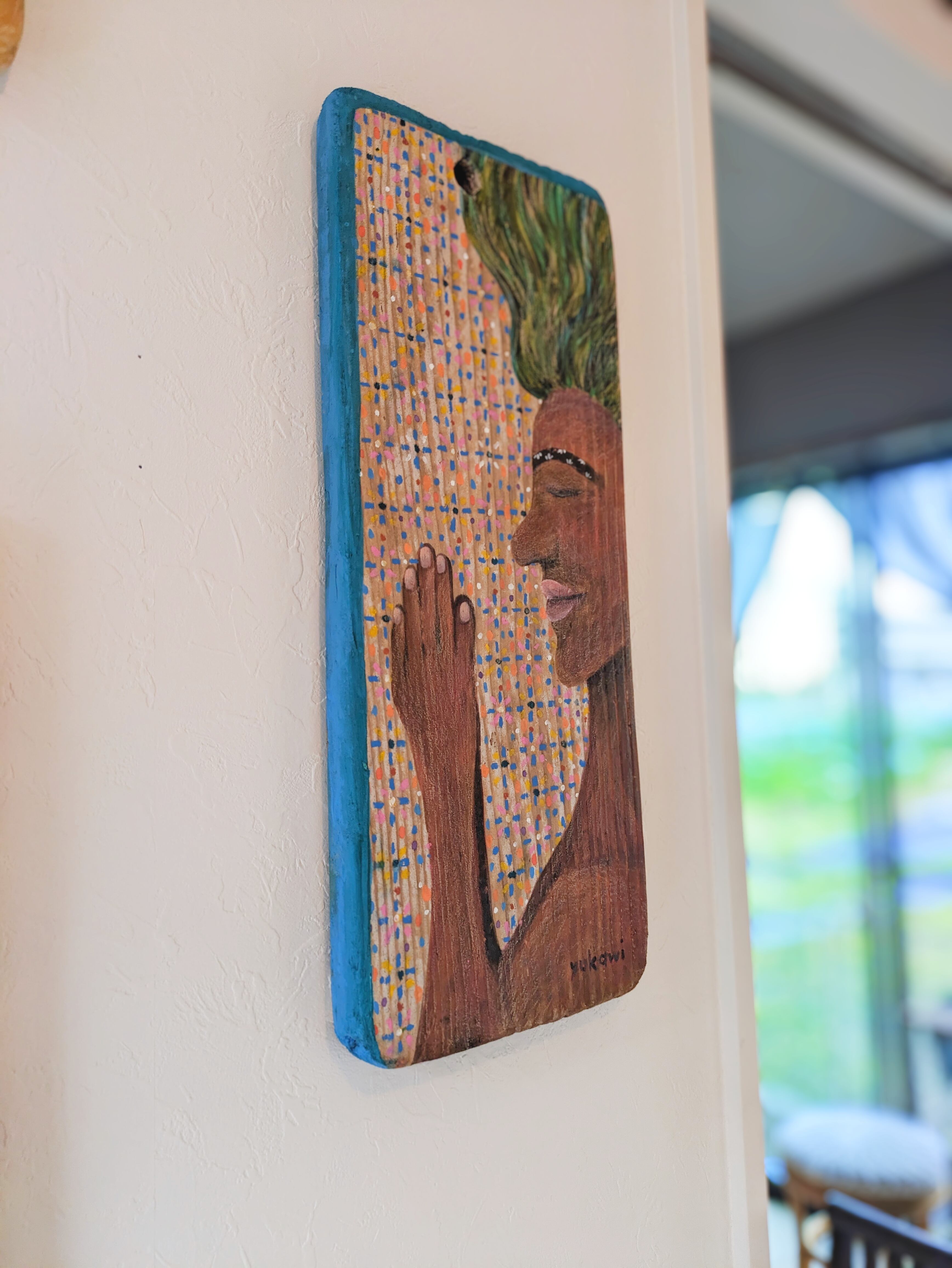 壁に飾る際は、元から穴が空いておりましたので味わいとして残してます。